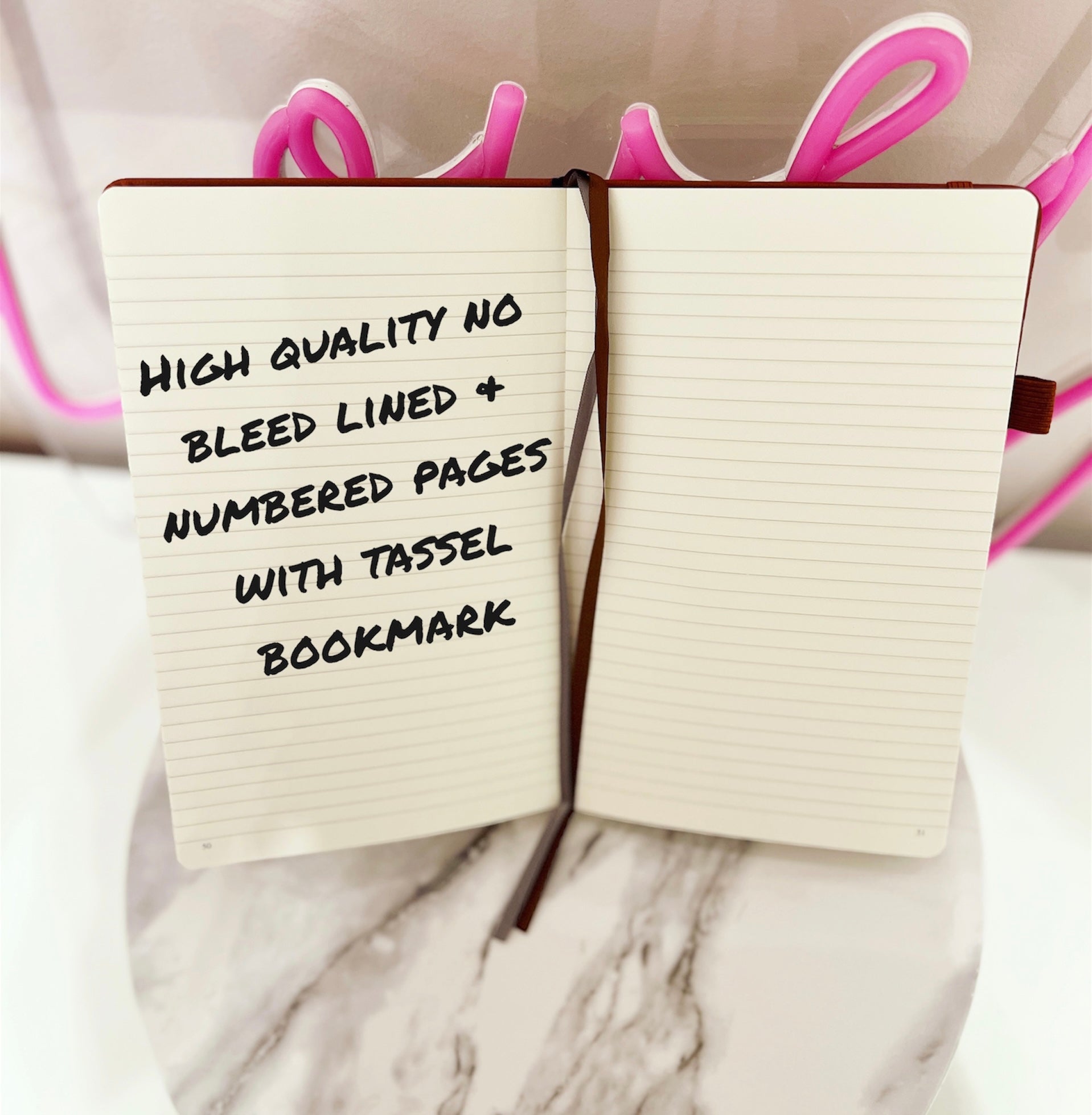 This notebook is beautifully crafted with a hardback cover, 156 numbered and lined pages. With thick high quality no bleed through paper! There is a helpful pocket at the front of the book for baby keepsakes or extra notes to be stored as well as a pocket folder in the back cover to store cards and extra memorabilia like ultrasounds as well.